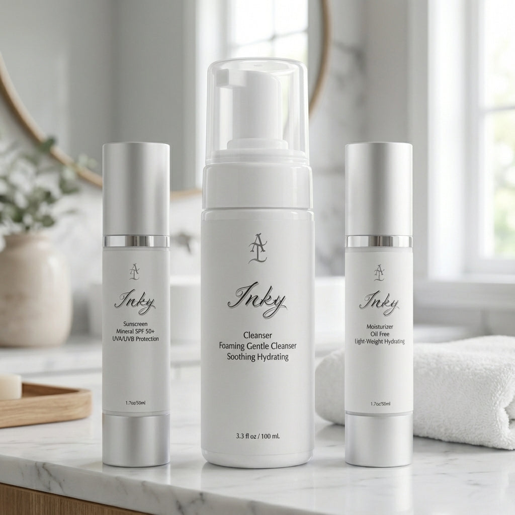 A 3-step skincare system created for tattoo lovers and anyone who wants calm, balanced, and protected skin.